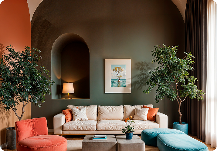 At Rabbi Interiors, we create interiors that blend elegance, comfort, and functionality. From modern homes to vibrant workspaces, our expert designers ensure every detail mirrors your taste and lifestyle. We believe in transforming ordinary rooms into extraordinary experiences.